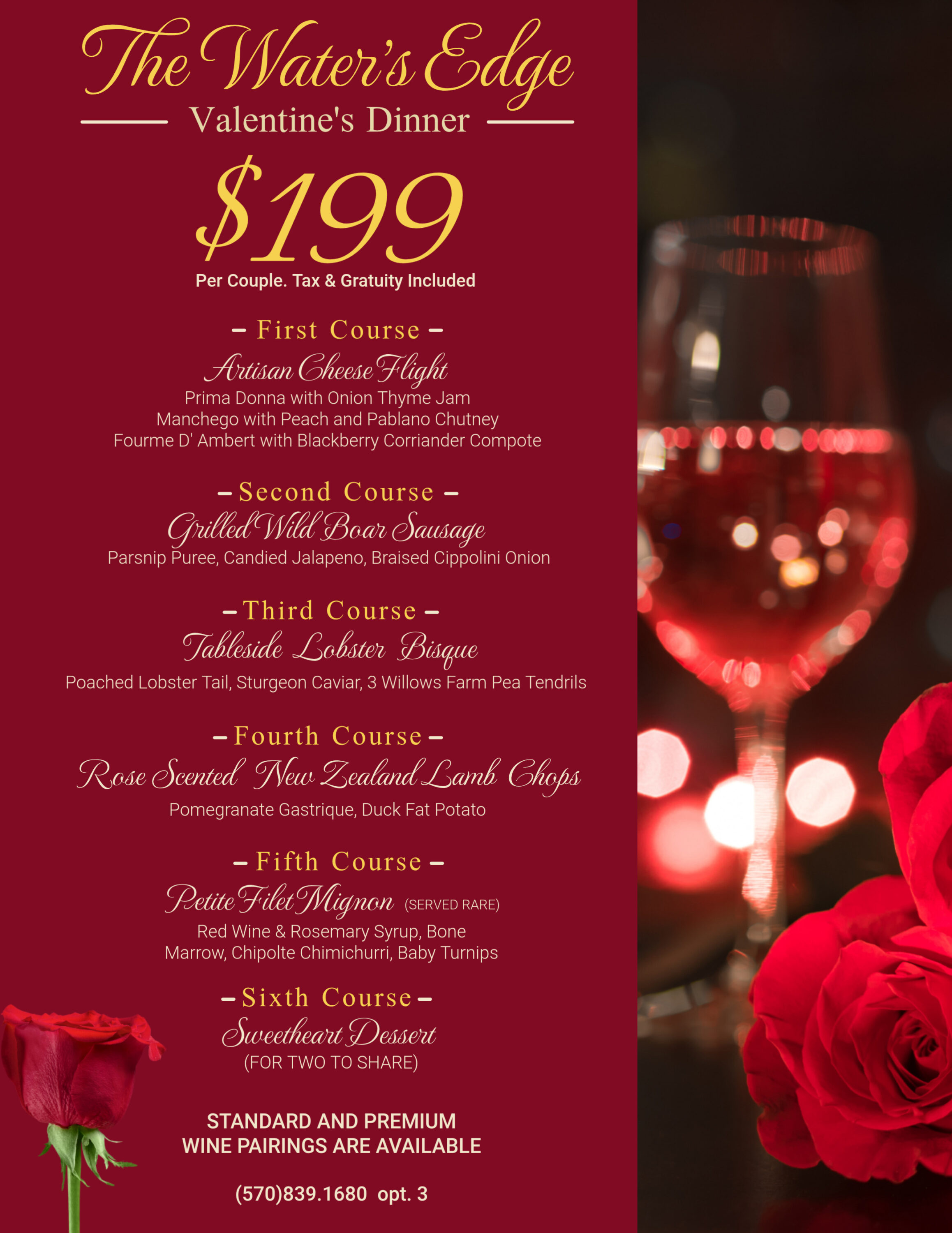 Valentine’s Day at The Water’s Edge Celebrate love with an unforgettable Prix Fixe Sweetheart Menu, thoughtfully crafted for two and designed to be shared. Indulge in a multi-course culinary journey featuring elegant, romantic dishes—some meant to enjoy together—set against lakeside views and the warm glow of a fireside dining experience.