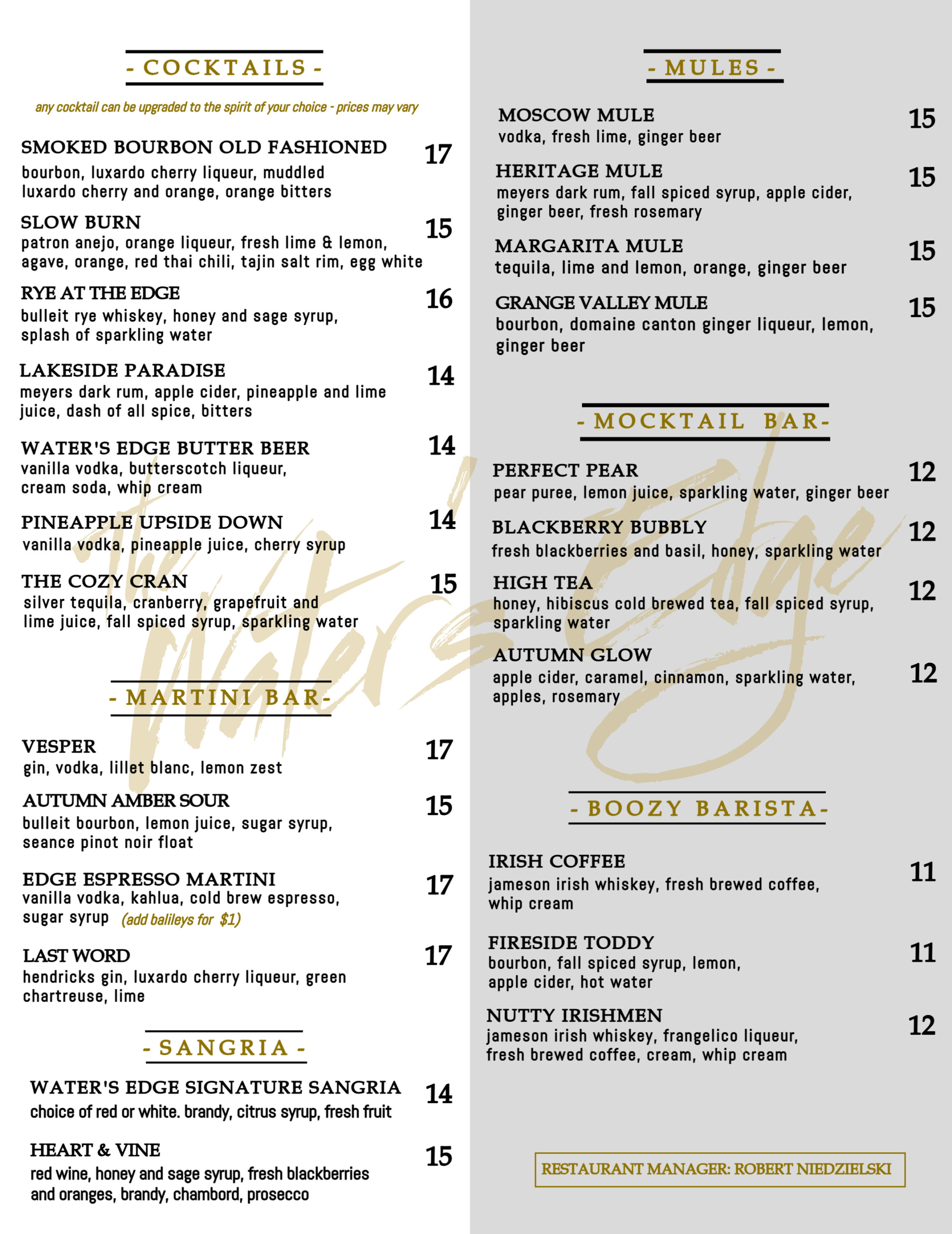 Chef Ryan always pushes the boundaries of culinary excellence, constantly striving to improve and sharing his knowledge with his team. Come and indulge in his exceptional creations at The Water’s Edge.
